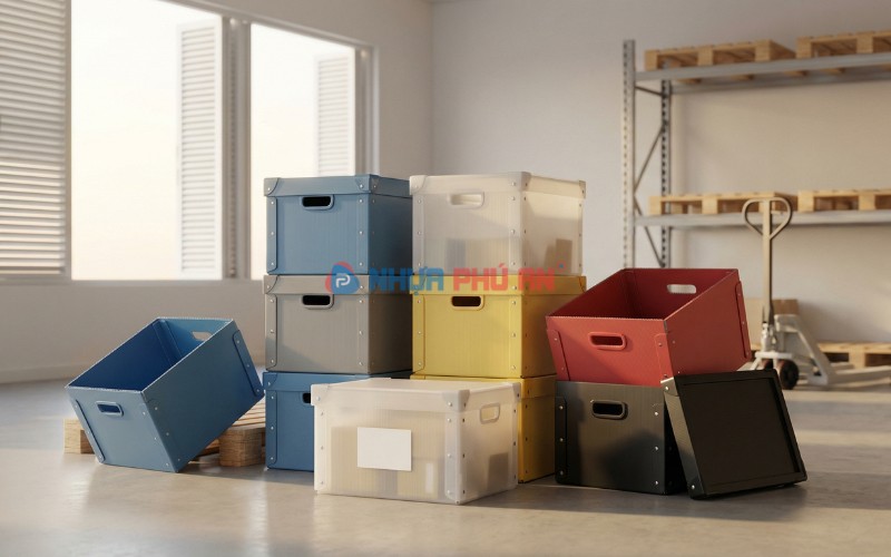 Yếu tố tác động mạnh nhất là kích thước và độ dày tấm Danpla. Kích thước càng lớn thì lượng vật liệu càng nhiều; độ dày càng cao thì chi phí vật liệu và mức độ cứng cáp cũng tăng. Nếu mục tiêu là giá cạnh tranh nhưng vẫn bền, cách tối ưu nhất là chọn độ dày đủ dùng theo tải trọng và tần suất luân chuyển, tránh chọn quá mỏng khiến thùng nhanh xuống form hoặc quá dày gây tăng chi phí không cần thiết.