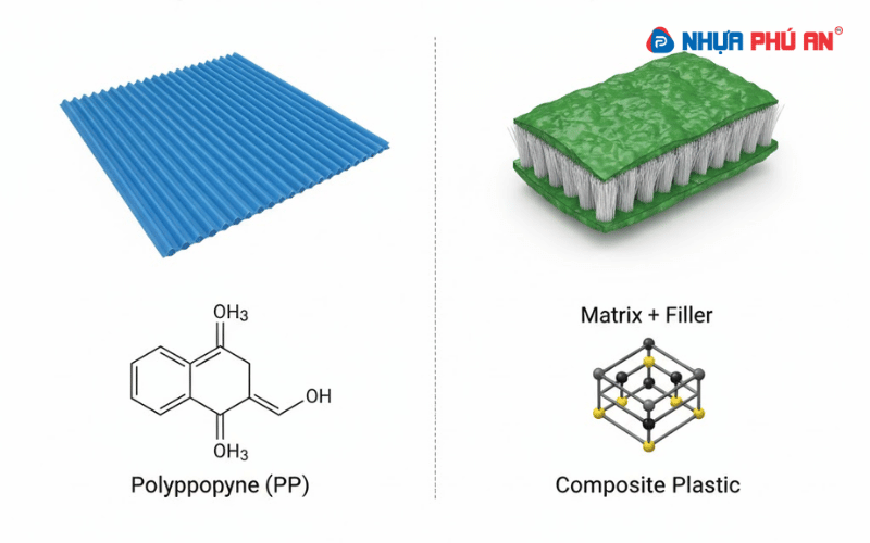 Để biết tại sao hai loại nhựa này lại có mức giá và ứng dụng chênh lệch nhau đến vậy, chúng ta cần đi sâu vào "DNA" cấu tạo của chúng. Dù cùng mang tên là nhựa, nhưng phương pháp sản xuất và thành phần bên trong lại hoàn toàn khác biệt.