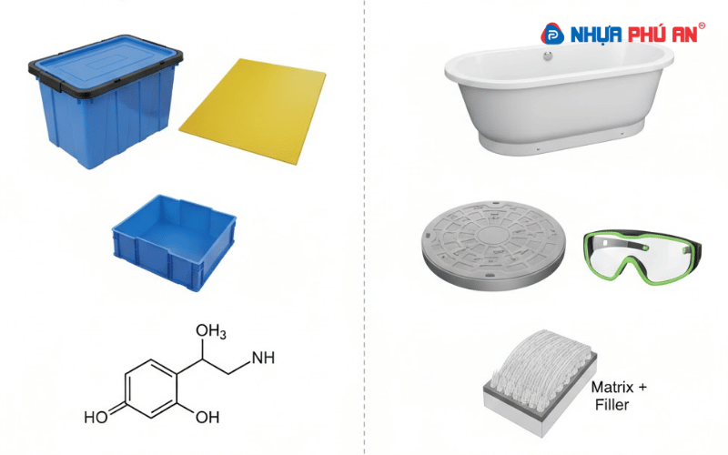 Thiết bị xây dựng và Giao thông: Làm nắp hố ga, thùng rác công cộng, hoặc mái che ngoài trời cần độ cứng cực cao và khả năng chống tia UV, chống cháy.