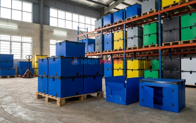 Tại Thái Nguyên, Danpla được dùng nhiều vì nó phù hợp với môi trường kho – xưởng – sản xuất: thùng nhẹ giúp thao tác bốc xếp nhanh, giảm công vận chuyển nội bộ; đồng thời vật liệu chống ẩm tốt, không dễ mềm rã như carton khi gặp độ ẩm kho hoặc đi nhiều chặng. So với thùng nhựa đặc hoặc thùng kim loại, Danpla có ưu điểm về trọng lượng và tính linh hoạt, dễ tùy biến theo kích thước hàng hóa và cách tổ chức kho bãi.